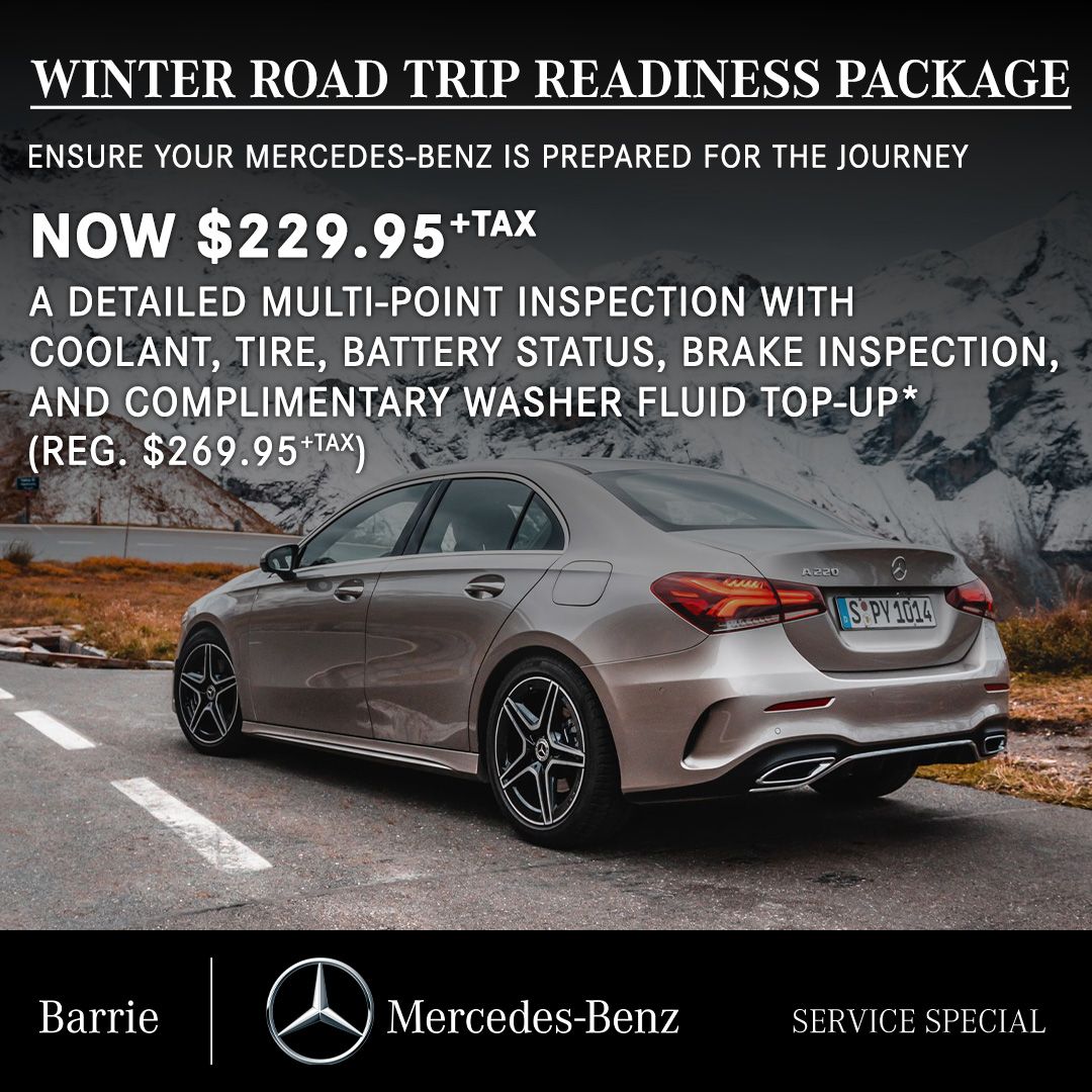 *Offer valid for the Winter Road Trip Readiness Inspection Package. Includes Multi-Point Inspection, coolant check, tire inspection, battery test, brake inspection, and complimentary washer fluid top-up. Promotional price is $229.95 (regular price $269.95). Plus tax and shop supplies, if applicable. Any additional parts or repairs identified during inspection are extra. Offer subject to change without notice and may be withdrawn at any time. Applicable to most vehicle makes and models; some exclusions may apply. Offer ends Feb 28th. See dealer for details.