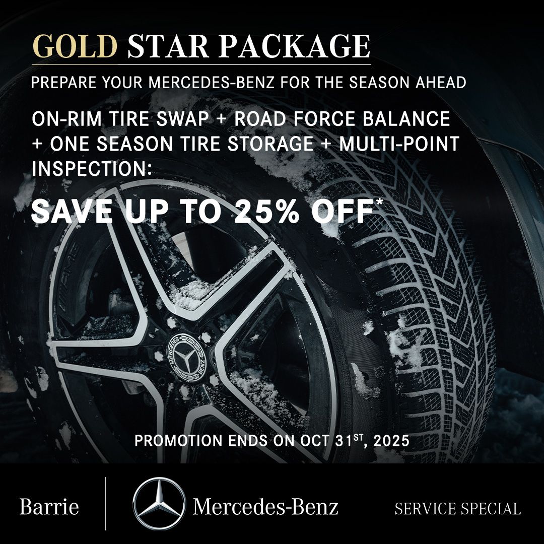 Seasonal care, refined. The Gold Star Package includes on-rim tire swap, roadforce balance, one season of tire storage, and brake inspection. $349.95 + tax (Reg. $569.00 + tax)